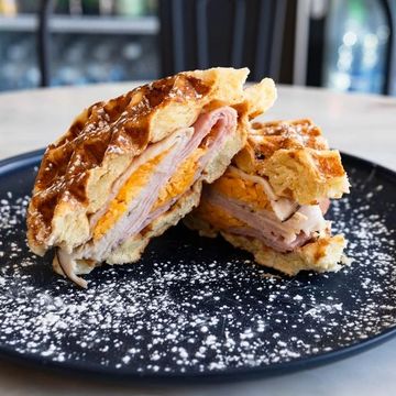 Liege Waffle with Turkey, Blackforest Ham with melted cheese and a Berry jam