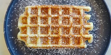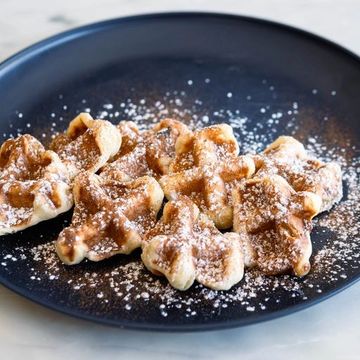 Eight bites of our CRISP Liege Waffle with a sprinkle of Cinnamon and Powdered Sugar