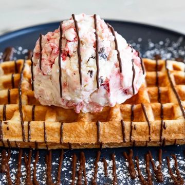Fan Favorite! Scoop of your choice Yoder's Ice Cream on top of our Liege Waffle