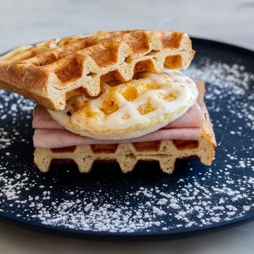 Liege Waffle with Blackforest Ham or Bacon, Cheese, and Egg